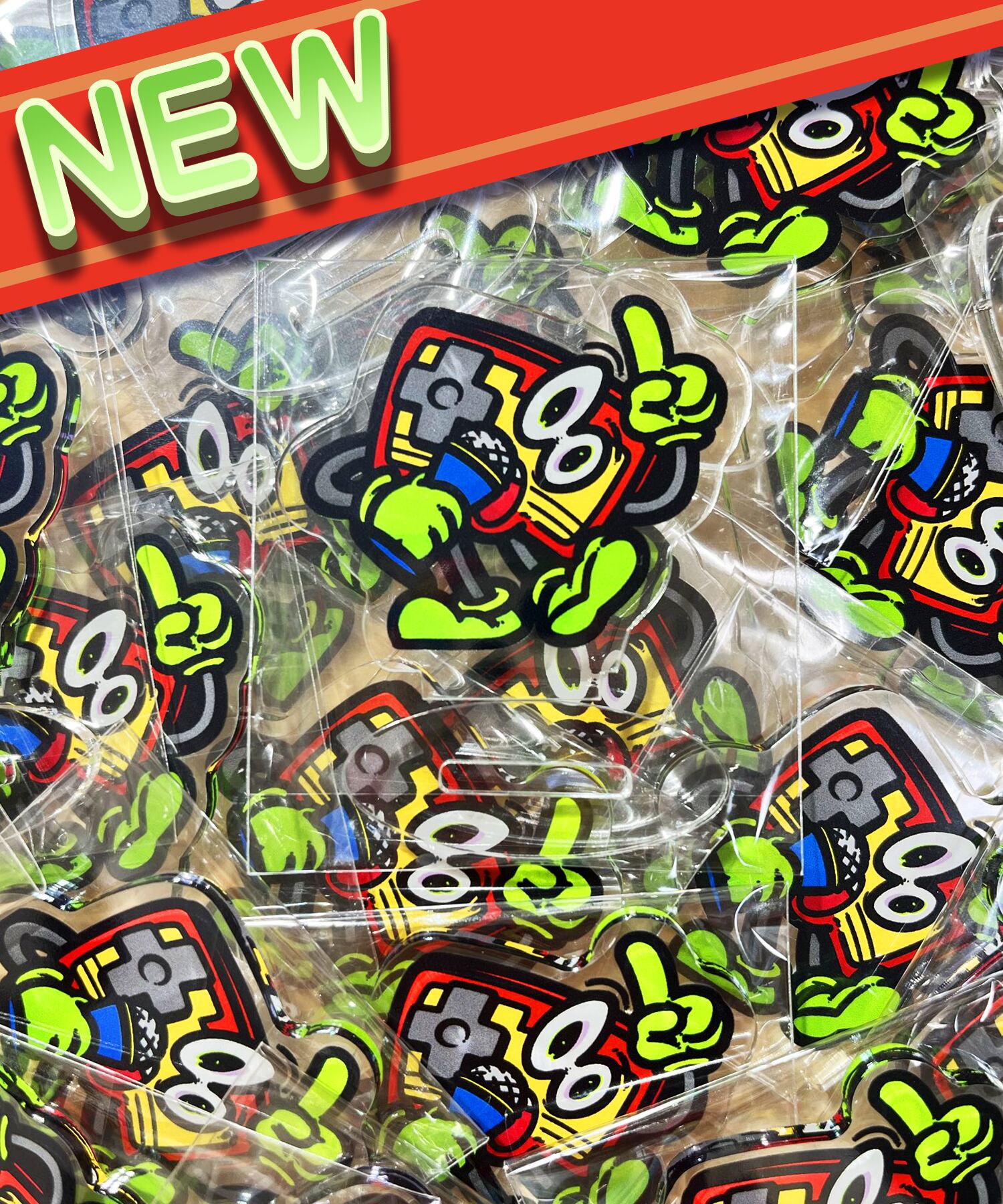 こぶりサイズのレゲレポくんアクリルスタンド。イラストは描きおろしです。